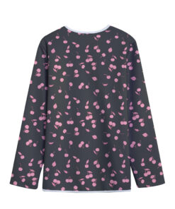 Pink Cherry Pattern Print Long Sleeve Short Coat